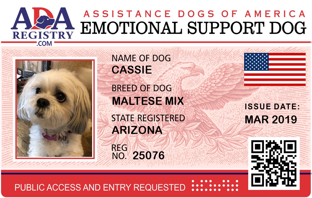 Emotional Support Dog Registration for Cassie