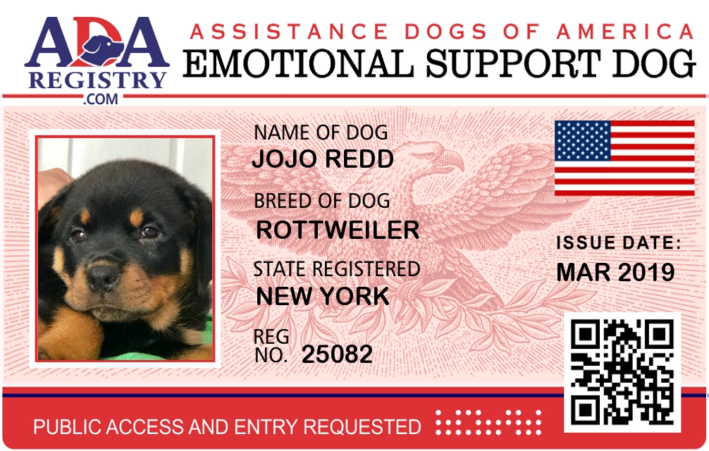 Emotional Support Dog Registration for JoJo Redd