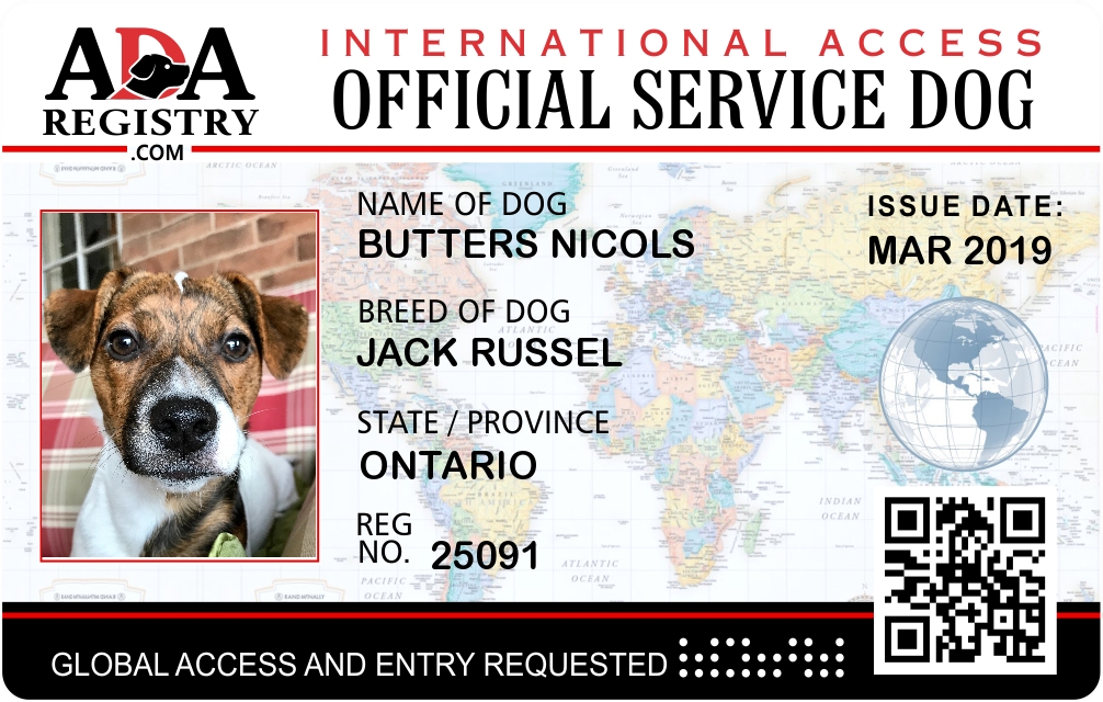 International Service Dog Registration for Butters Nicols