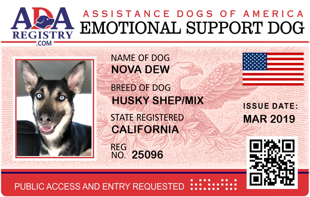 Emotional Support Dog Registration for Nova Dew