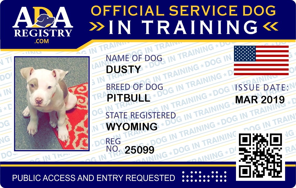 Service Dog In Training Registration for Dusty