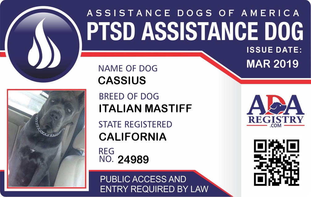 PTSD Assistance Dog Registration for Cassius