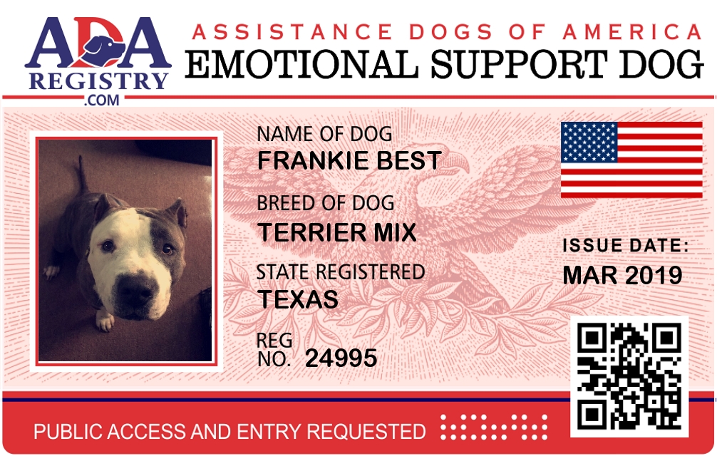 Emotional Support Dog Registration for Frankie Best