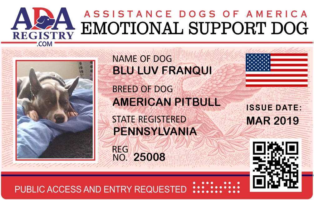 Emotional Support Dog Registration for Blu Luv Franqui