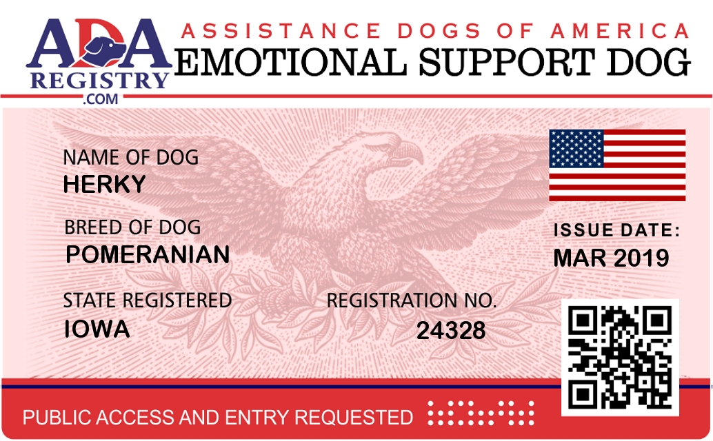 Emotional Support Dog Registration for Herky