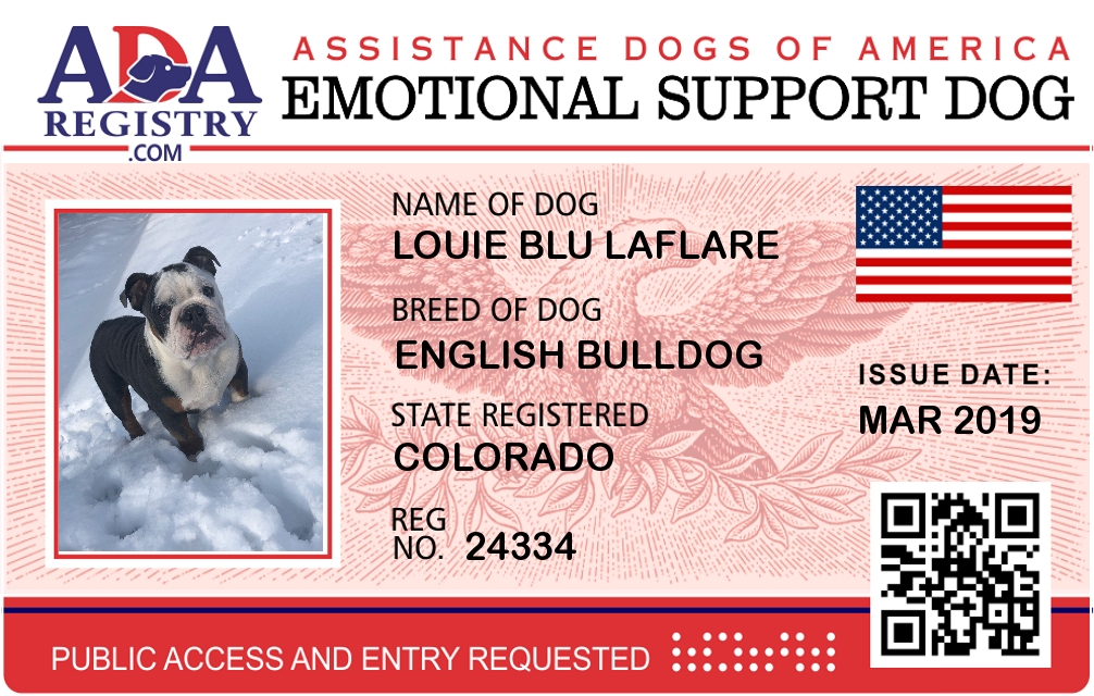 Emotional Support Dog Registration for Louie Blu Laflare