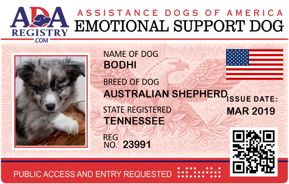 Emotional Support Dog Registration for Bodhi