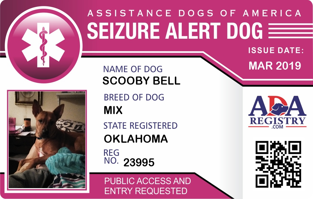 Seizure Assistance Dog Registration for Scooby Bell