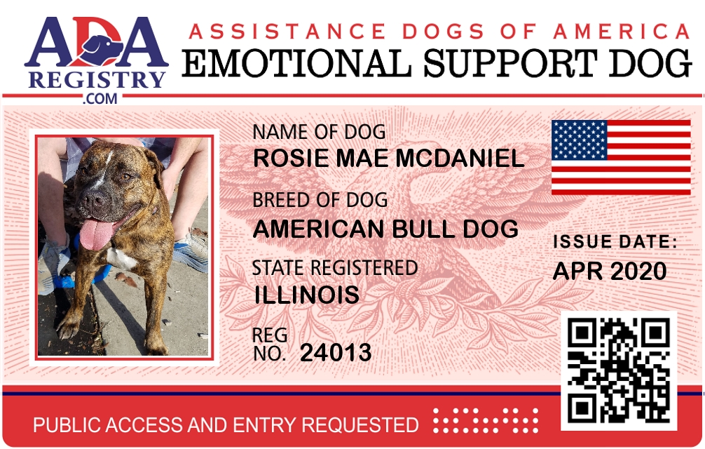 Emotional Support Dog Registration for Rosie Mae McDaniel