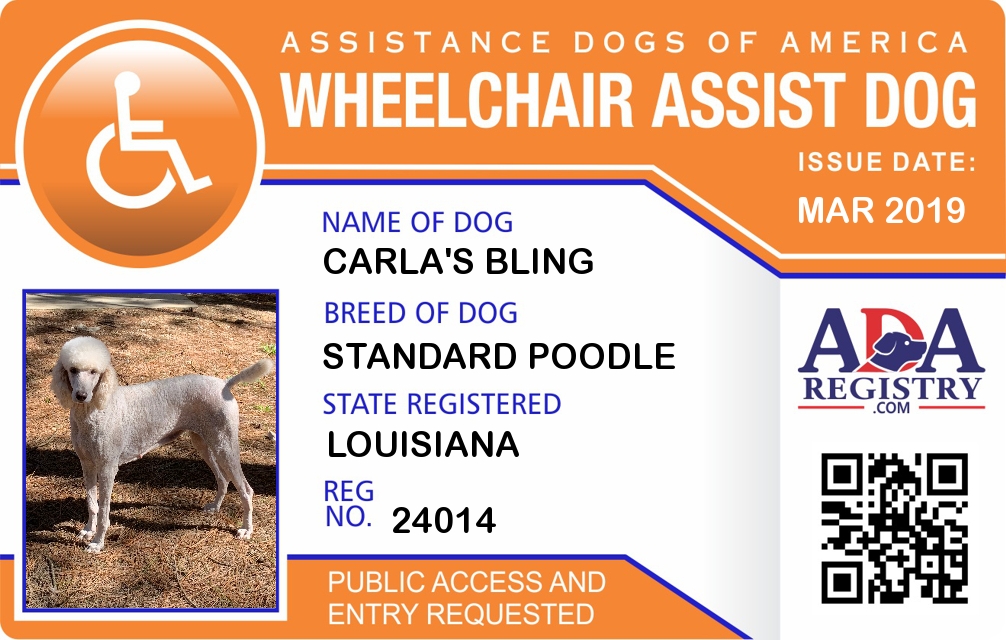 Wheel Chair Assistance Dog Registration for Carla's Bling
