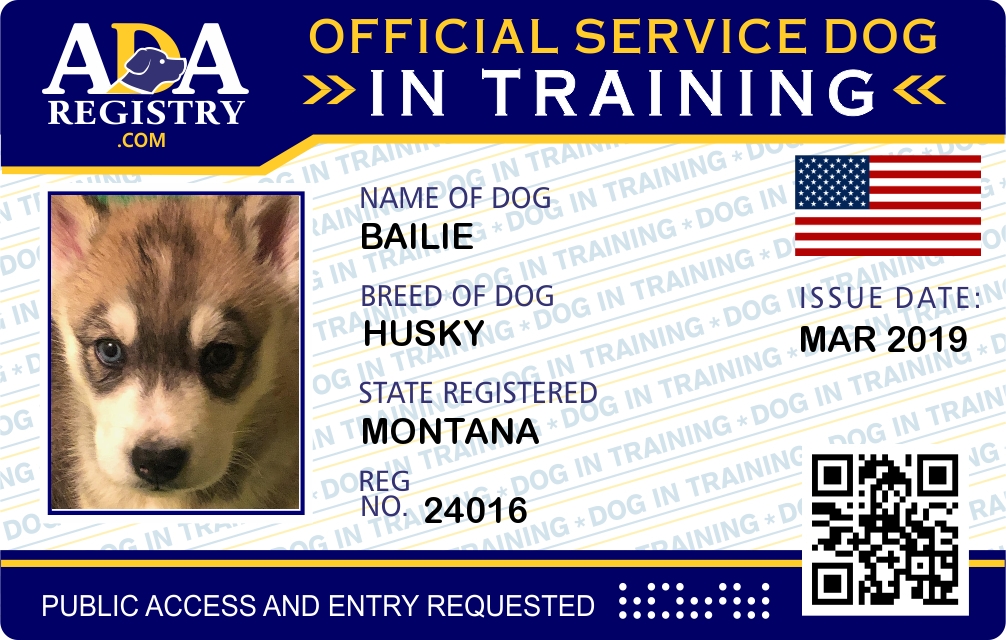 Service Dog In Training Registration for Bailie