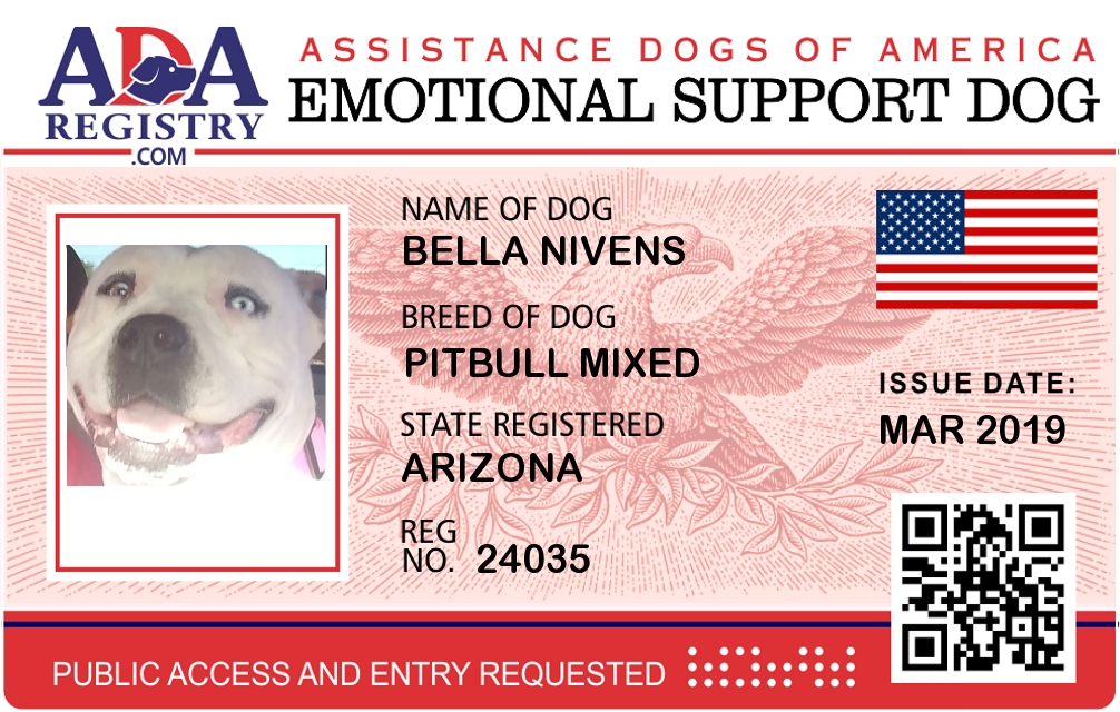Emotional Support Dog Registration for Bella Nivens