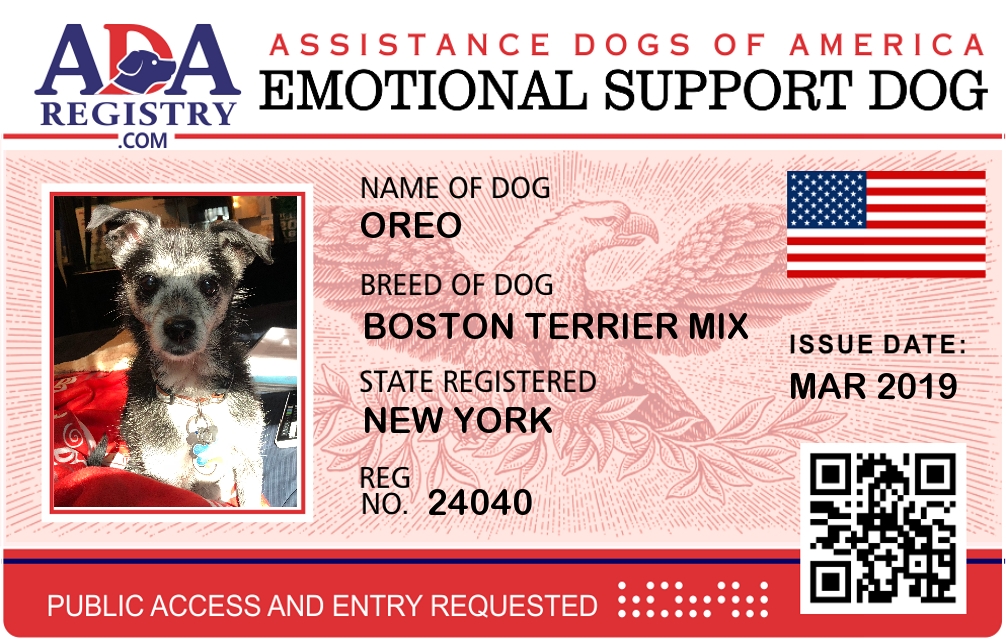 Emotional Support Dog Registration for Oreo