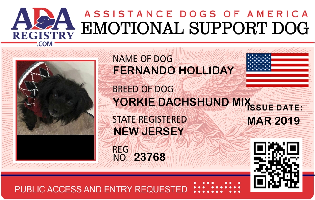Emotional Support Dog Registration for Fernando Holliday