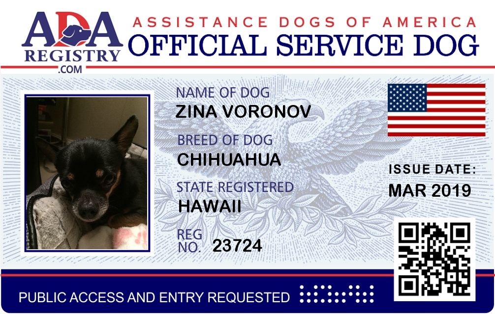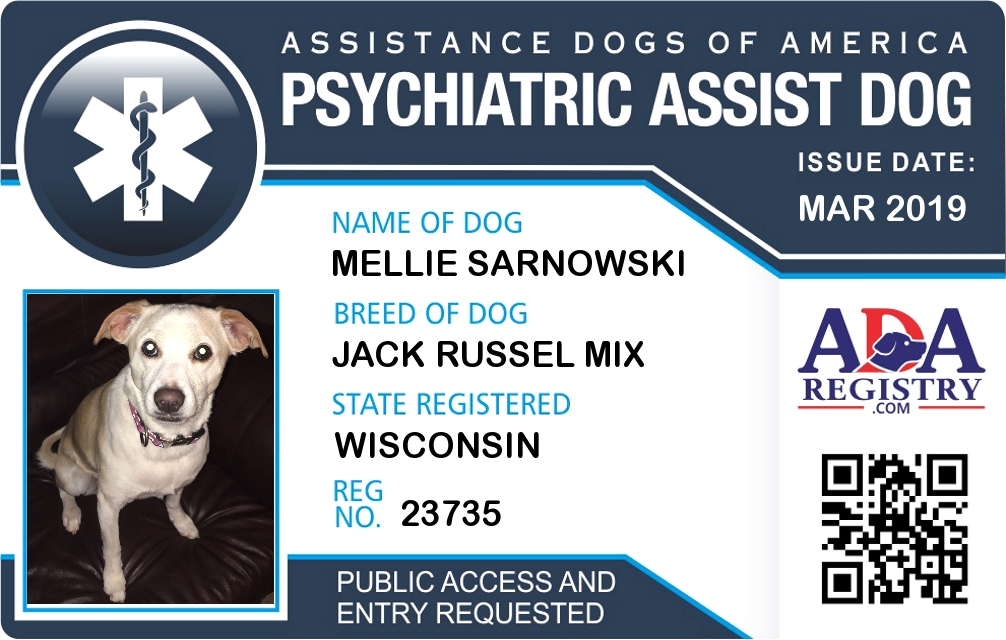 Psychiatric Service Dog Registration for Mellie Sarnowski