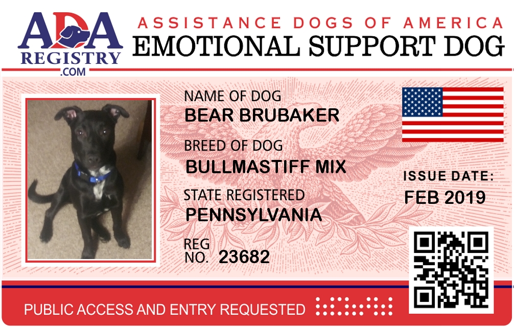 Emotional Support Dog Registration for Bear Brubaker