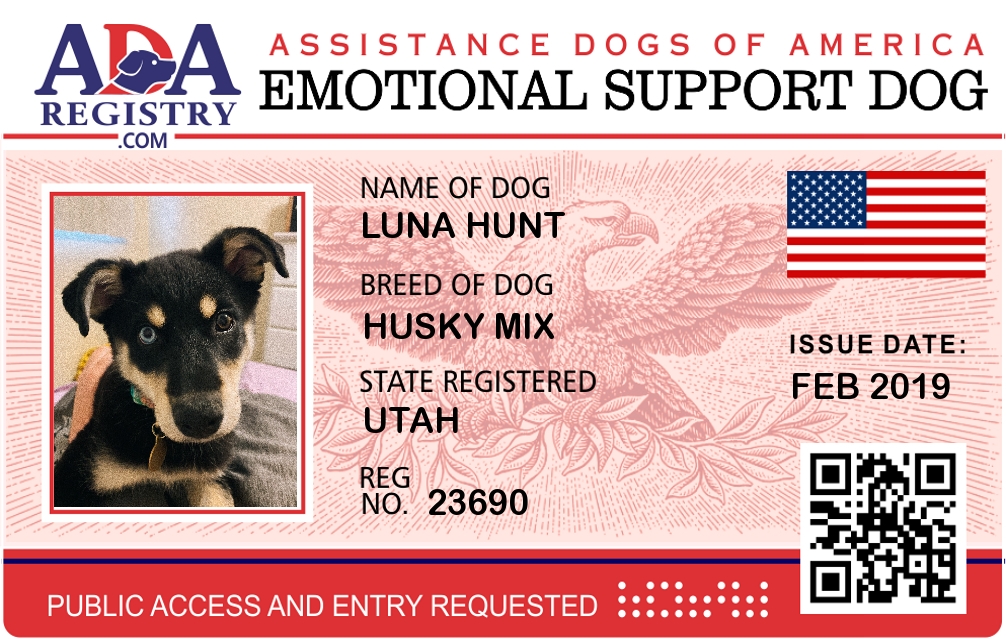 Emotional Support Dog Registration for Luna Hunt