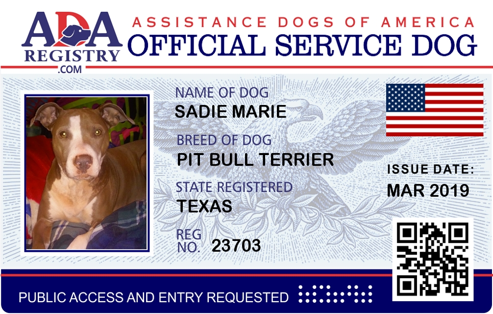 Service Dog Registration for Sadie Marie