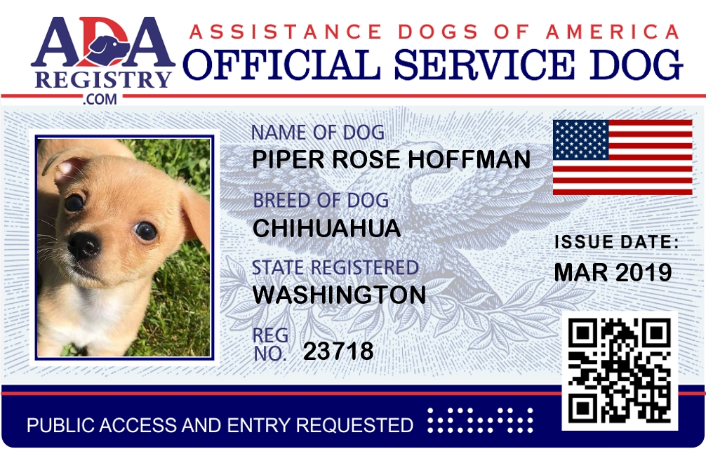 Service Dog Registration for Piper Rose Hoffman