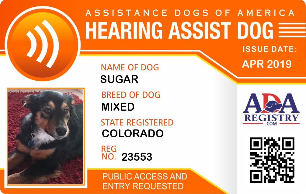 Hearing Assistance Dog Registration for Sugar