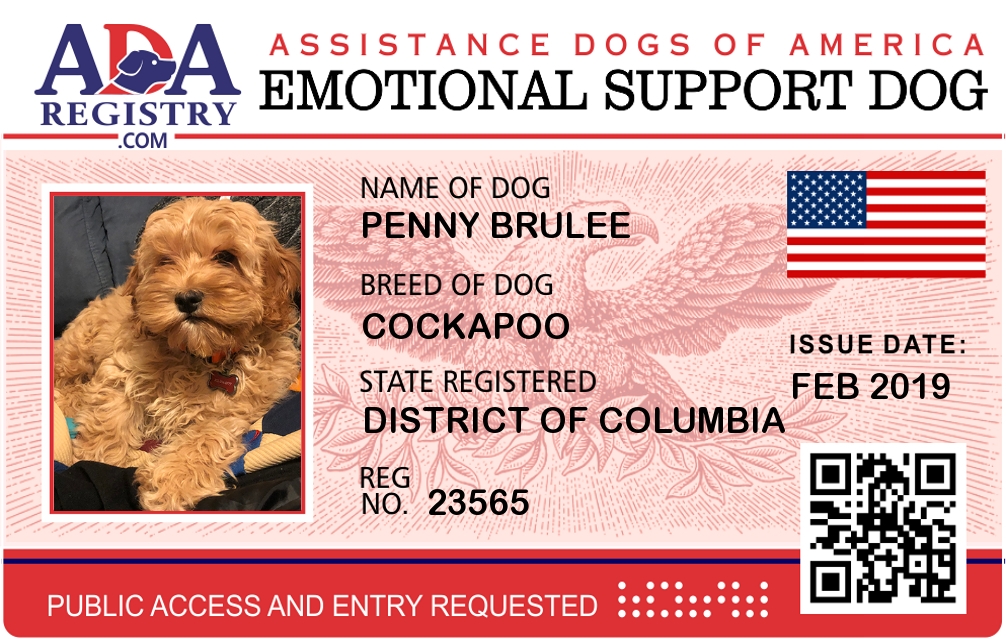 Emotional Support Dog Registration for Penny Brulee
