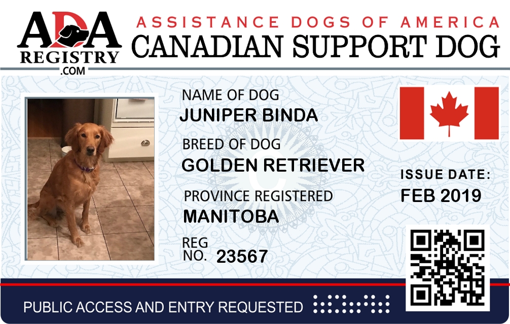 Emotional Support Dog Registration for Juniper Binda