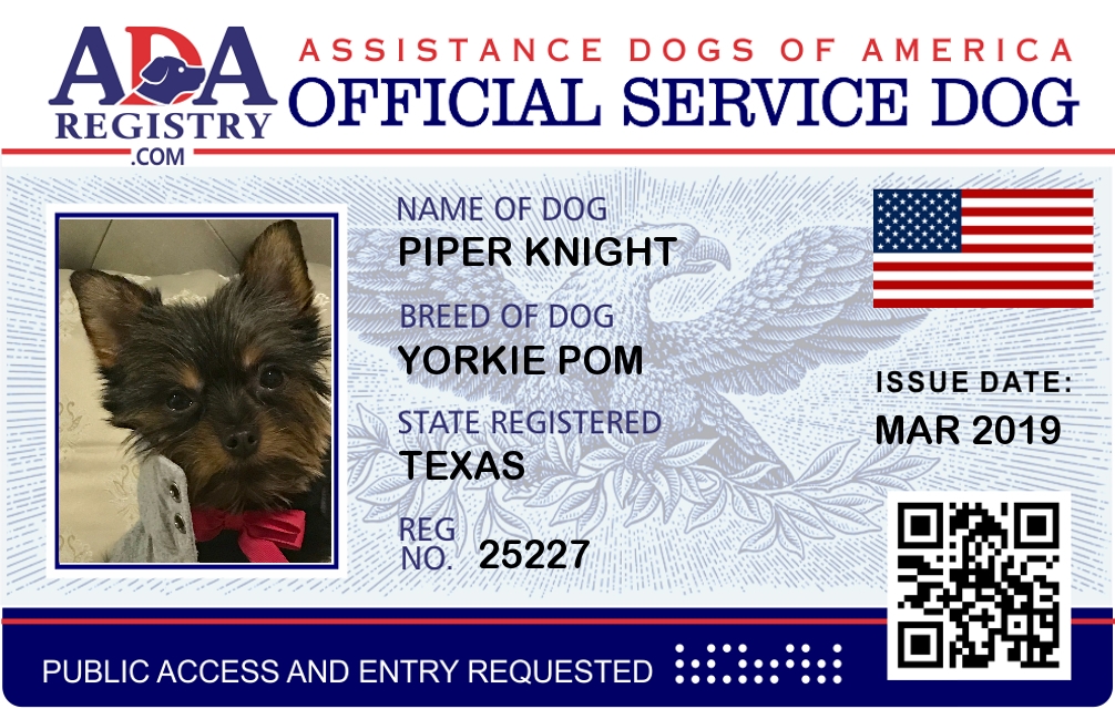 Service Dog Registration for Piper Knight