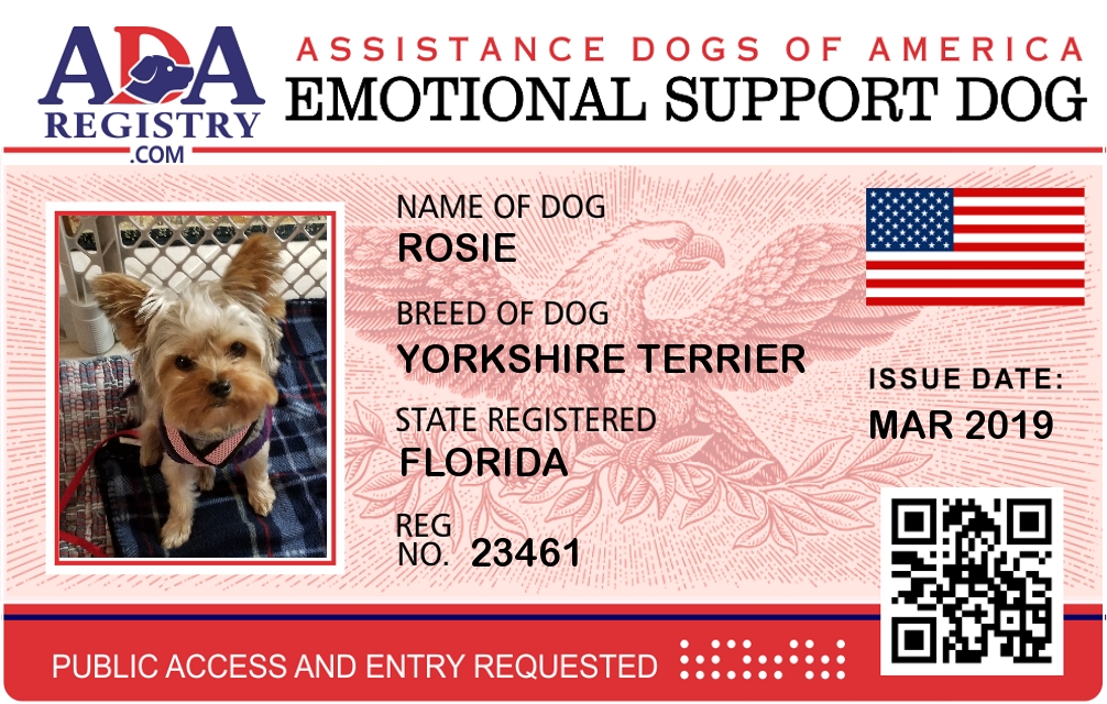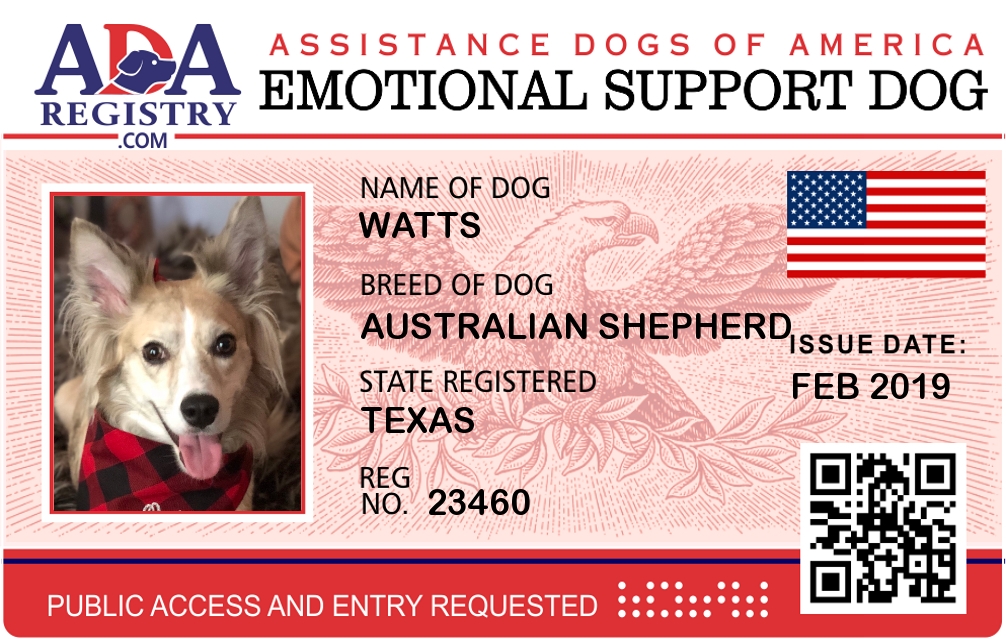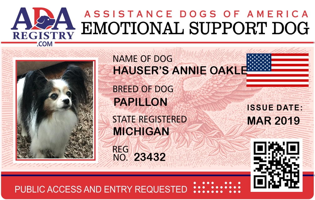 Emotional Support Dog Registration for Hauser’s Annie Oakle