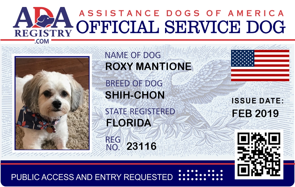Service Dog Registration for Roxy Mantione