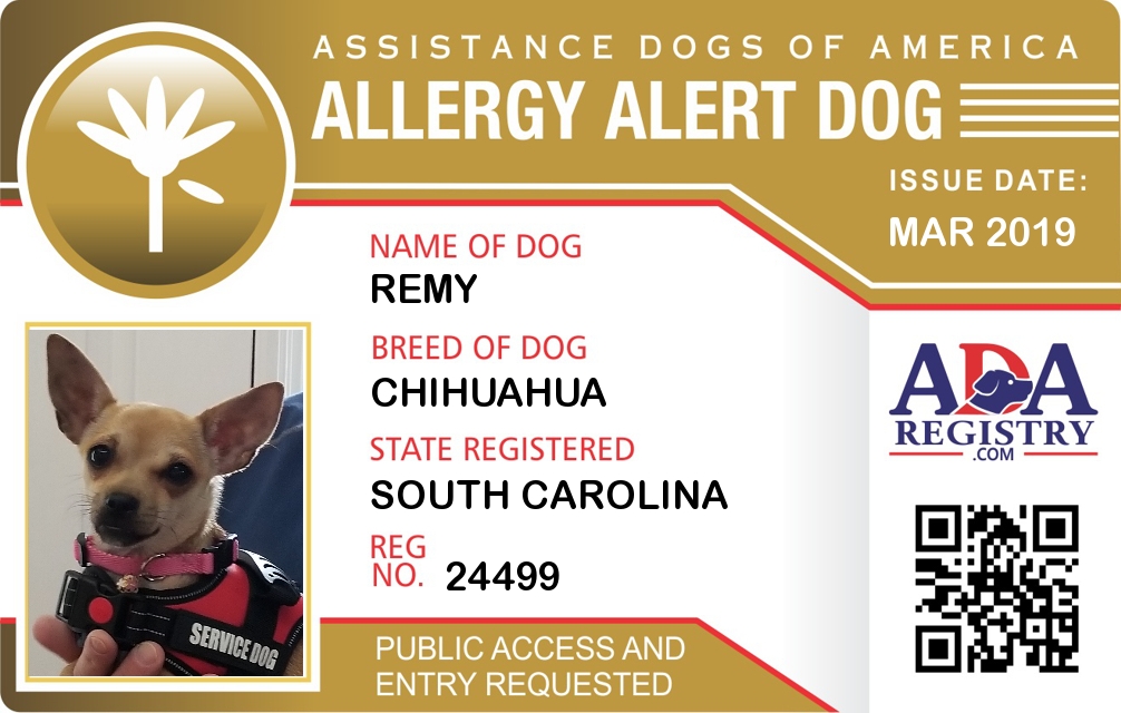 Allergy Alert Dog Registration for Remy