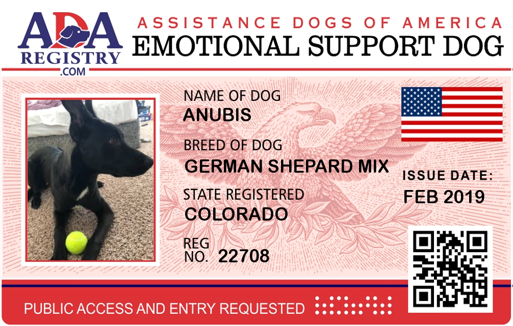 Emotional Support Dog Registration for Anubis