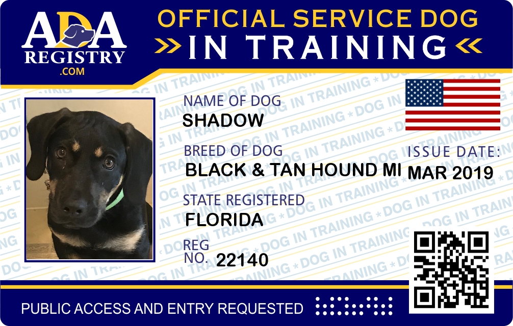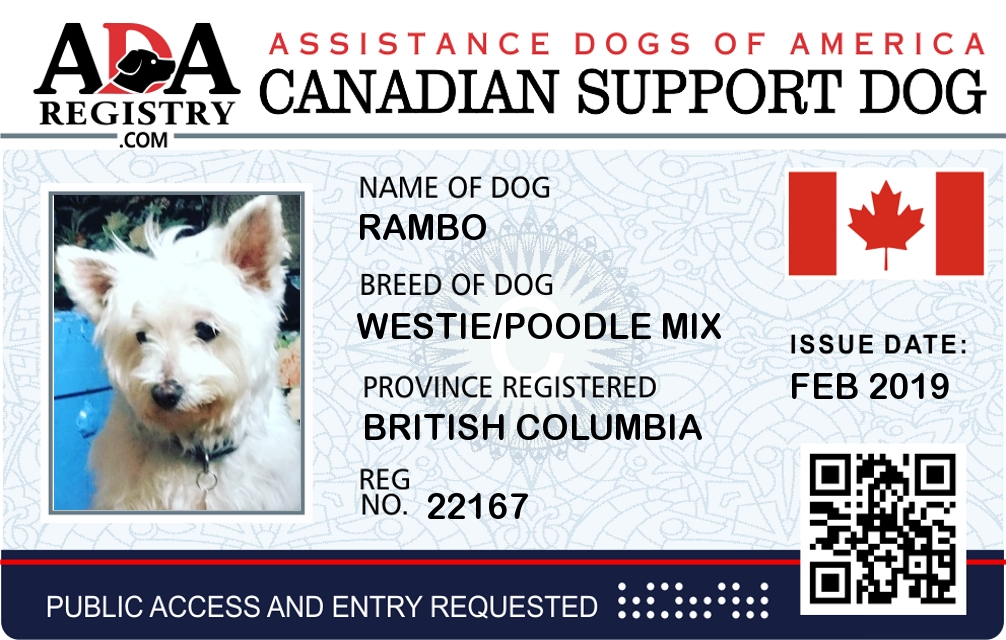 PTSD Assistance Dog Registration for TRIXZIE REW