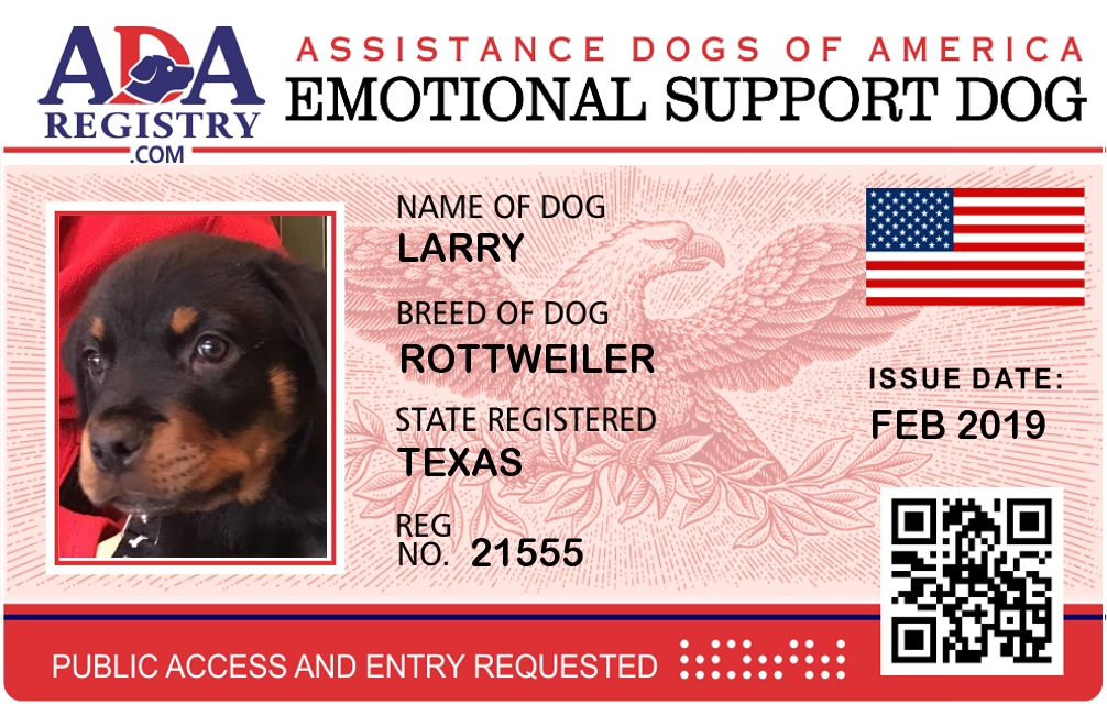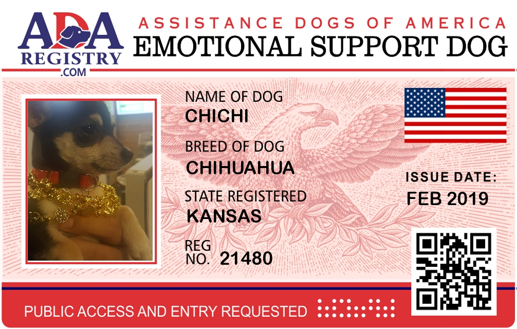 Emotional Support Dog Registration for Khaishier Meshaio “Baby”
