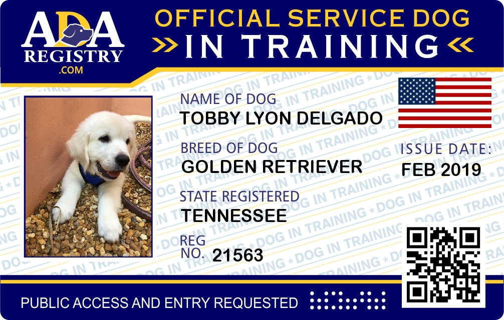Service Dog In Training Registration for Tobby Lyon Delgado