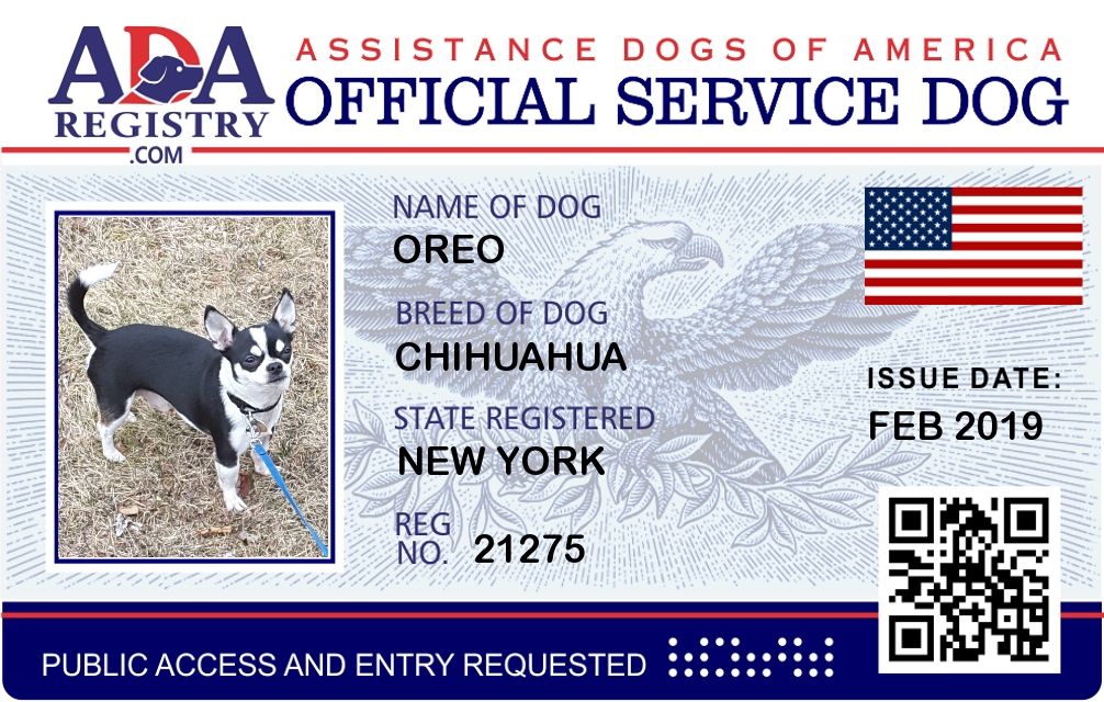 Psychiatric Service Dog Registration for Oliver