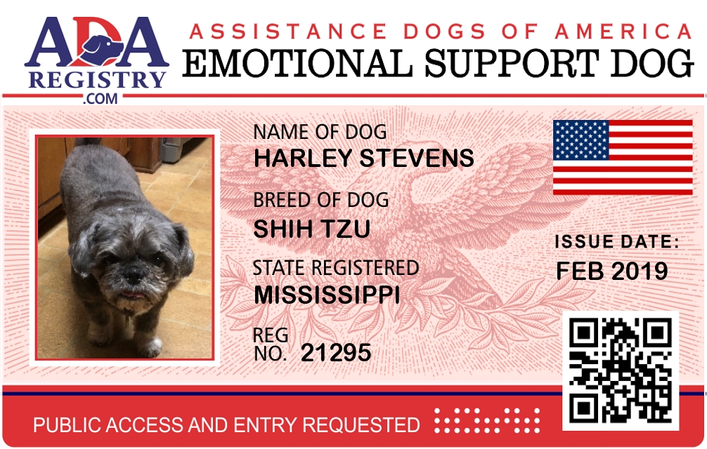 Emotional Support Dog Registration for Harley Stevens