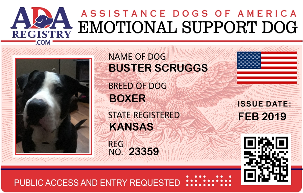 Emotional Support Dog Registration for Buster scruggs