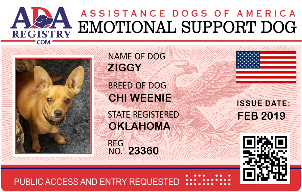 Emotional Support Dog Registration for Ziggy
