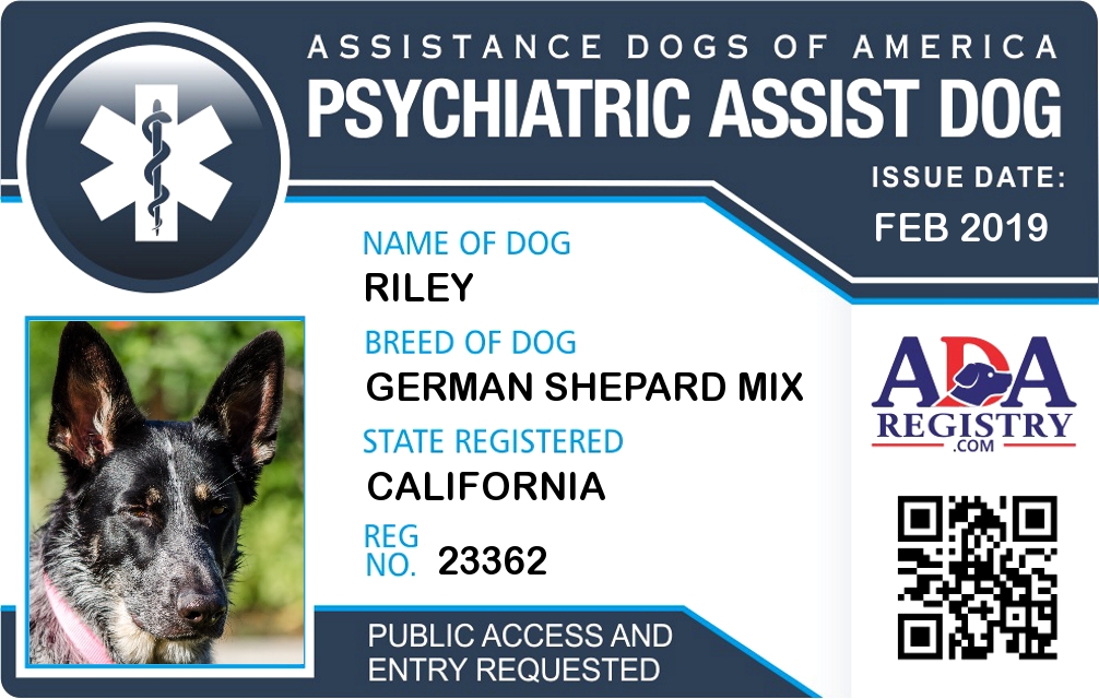 Psychiatric Service Dog Registration for Riley