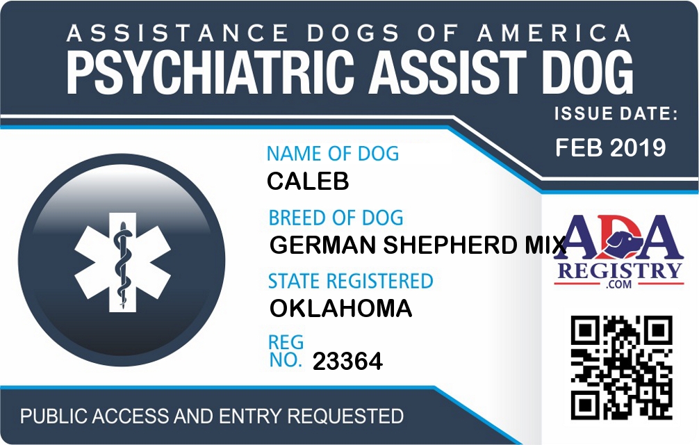 Psychiatric Service Dog Registration for Caleb