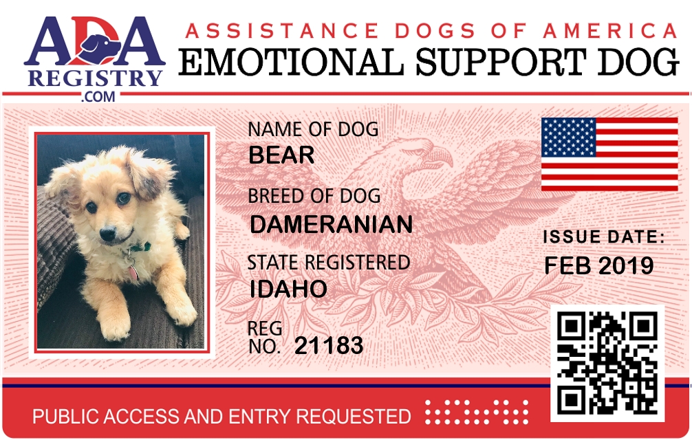 Emotional Support Dog Registration for Bear
