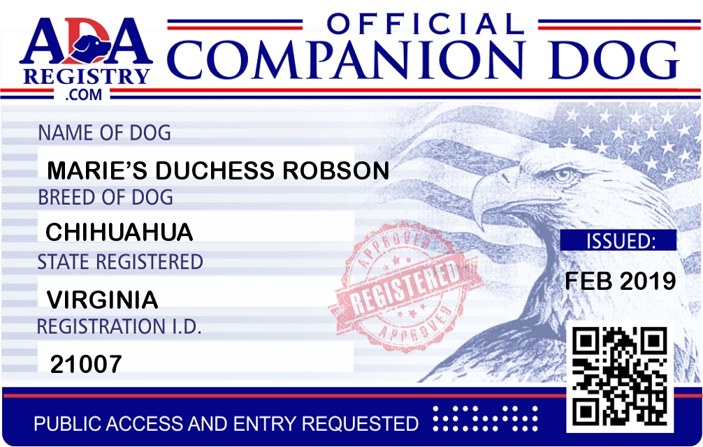 Companion Dog Registration for Marie’s Duchess Robson