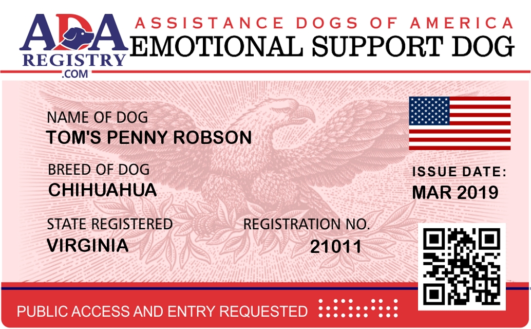Emotional Support Dog Registration for Tom's Penny Robson