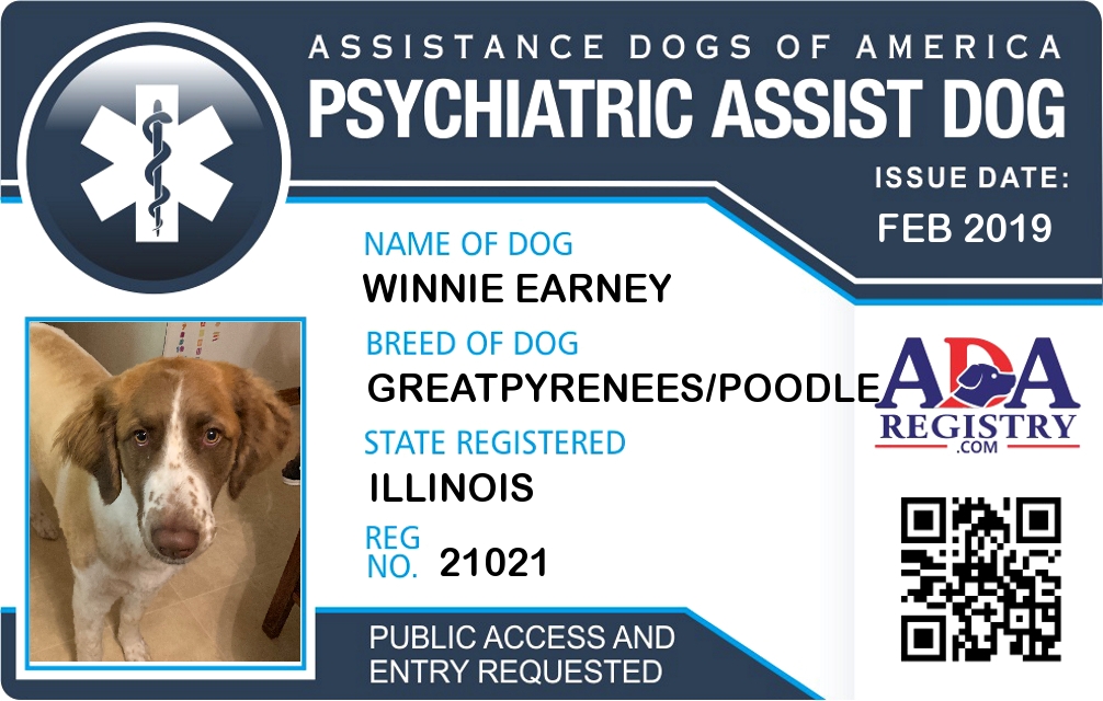 Psychiatric Service Dog Registration for Winnie Earney