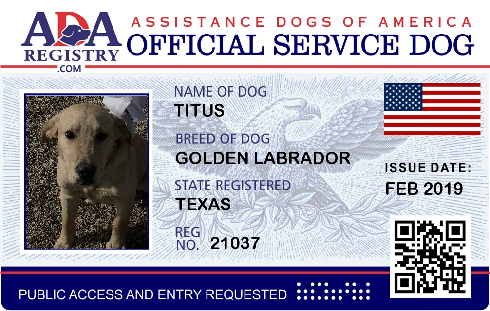 Service Dog Registration for Titus