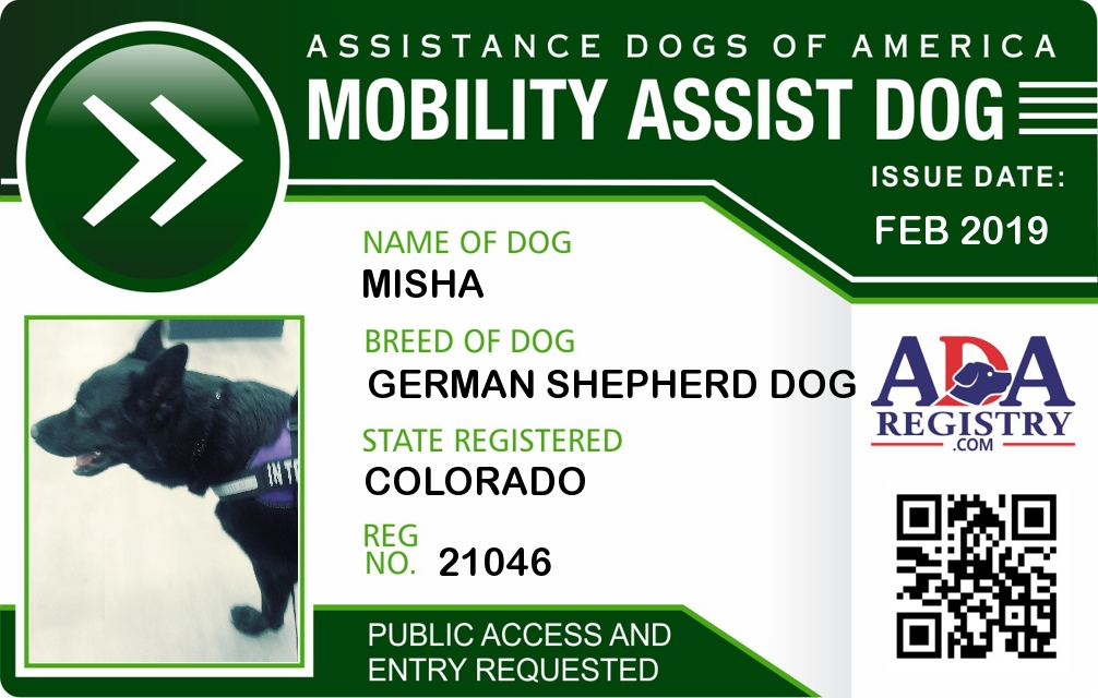 Brace / Mobility Assistance Dog Registration for Misha
