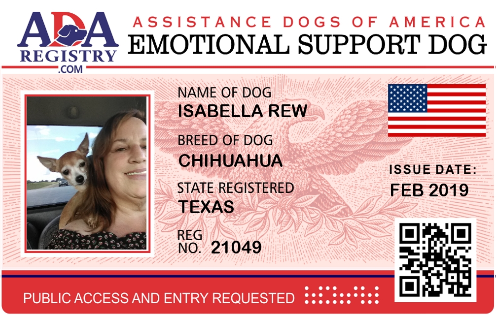 Emotional Support Dog Registration for Isabella Rew