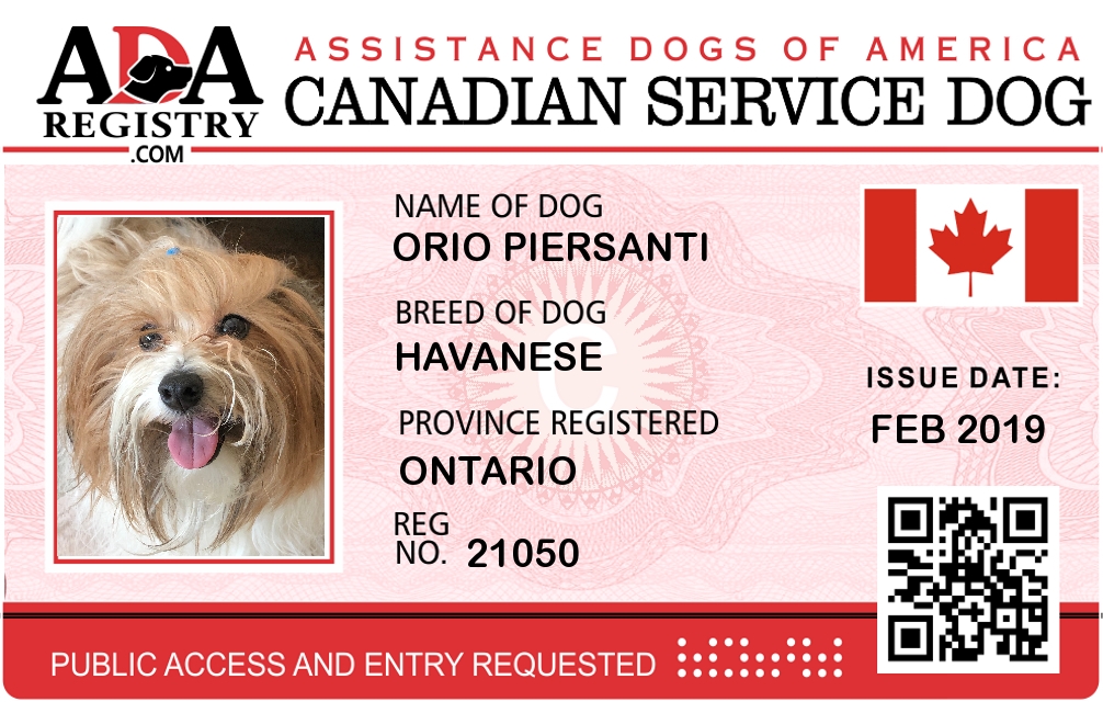 Service Dog Registration for Orio Piersanti