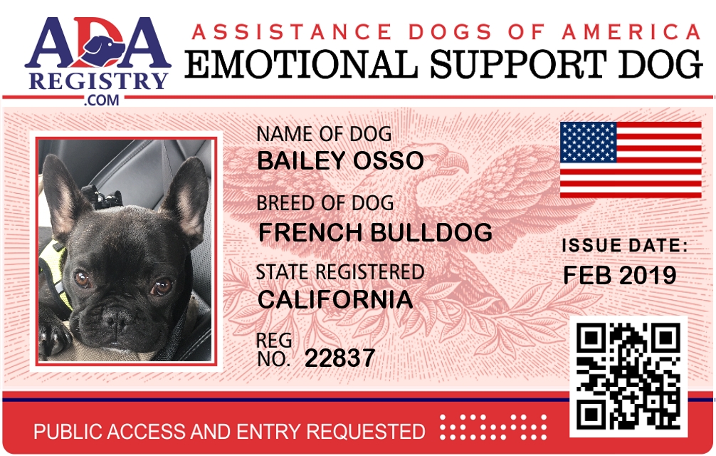 Emotional Support Dog Registration for Bailey Osso