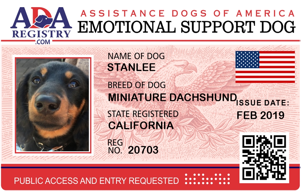 Emotional Support Dog Registration for Stanlee